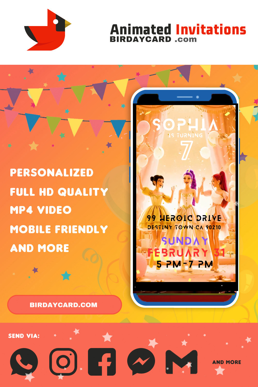 $17.00 Edit easily yourself! You’ll get a Canva.com link to personalize this animated video invitation. Share it with family and friends via Messenger, iMessage, WhatsApp, Email, Viber, or upload it to your Facebook event page. (No computer needed — you can edit and save it right from your phone!)